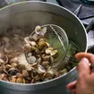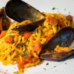 en utilisant des produits locaux: moules, clovisses, poisson,